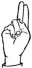 На ћирилици написано СТЕВАН КОСЈЕРИНА састоји се из 15 слова [?]. Исписано ћириличном једноручном азбуком за глувонеме: